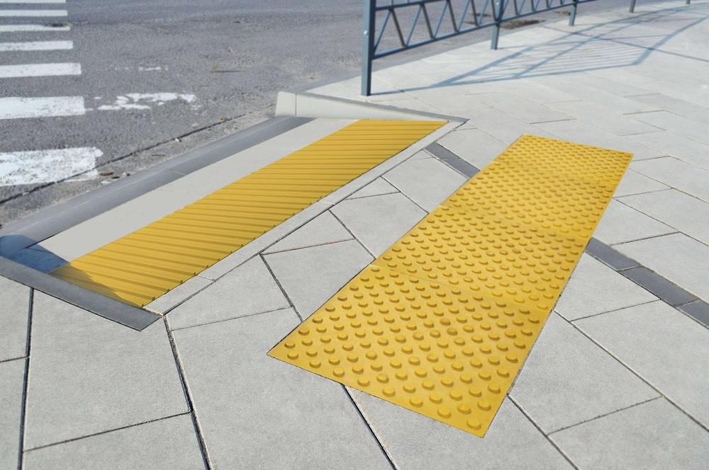 Тактильная плитка с продольными рифами 400x400x40 желтая